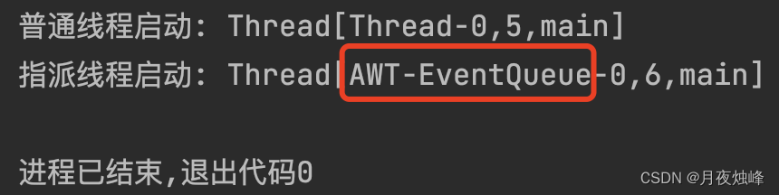 通过控制台可以看到,线程打印的线程信息有差异,SwingUtilities.invokeLater运行的线程为AWT-EventQueue(关于代码实现可以自行查看源码,比较简单)。