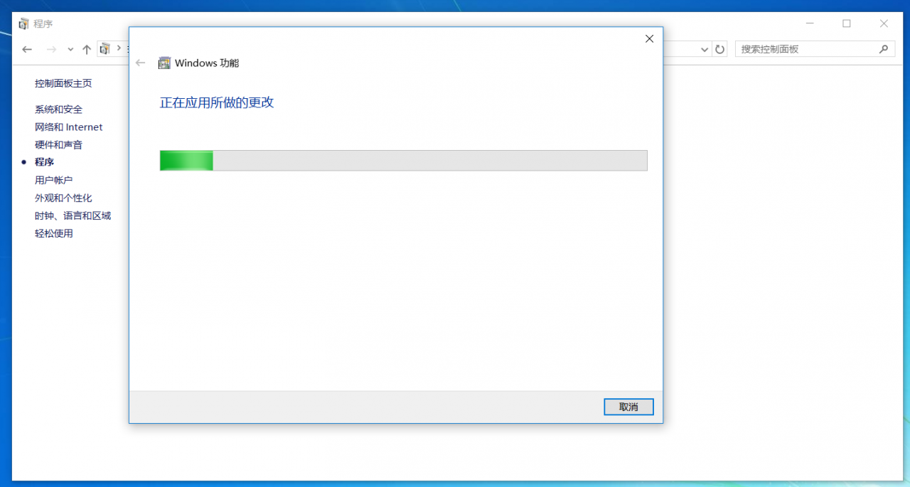 5、运用程序更改结束后,选择“立即重新启动”。系统重新启动后,则IIS配置结束。