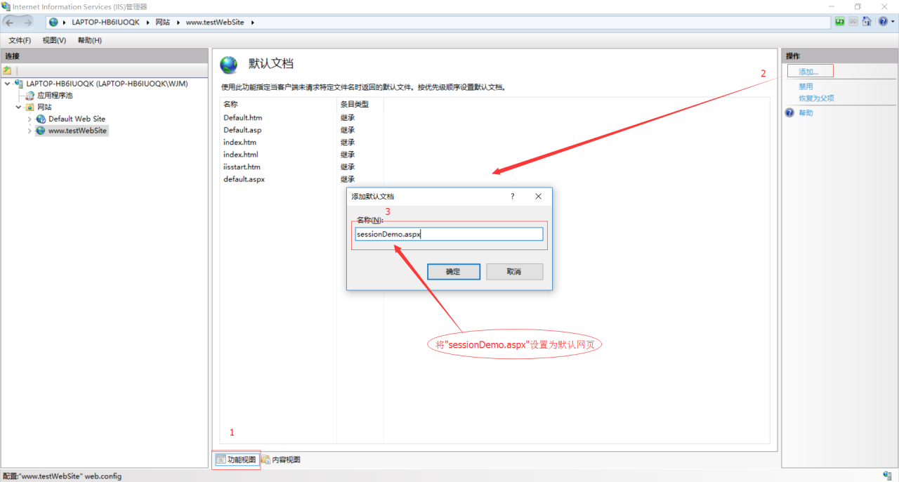 12、测试。在浏览器地址栏输入:”http://localhost:8090/sessionDemo.aspx“,访问。