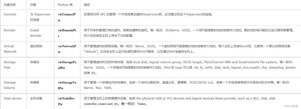 libvirt的核心价值和主要目标就是提供了一套管理虚拟机、稳定的、高效的应用程序接口(API)。