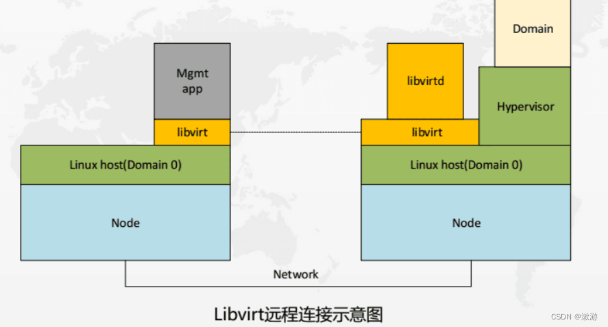 - 本地&&远程访问:通过在本地运行libvirt daemon,本机和远程机器,都可以访问并使用libvirt的功能。远程一般通过简单配置SSH即可。
