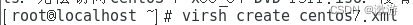 新的XML配置文件主要是将centos7.xml中的启动盘由cdrom改为hd,否则启动虚拟机后依然会再次执行安装操作系统给的过程,其他没有改变。