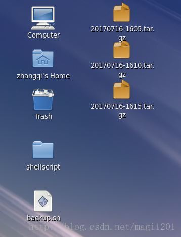 我们在zhangqi用户桌面下创建一个备份文件的脚本backup.sh,这个脚本需要每5分钟执行一次