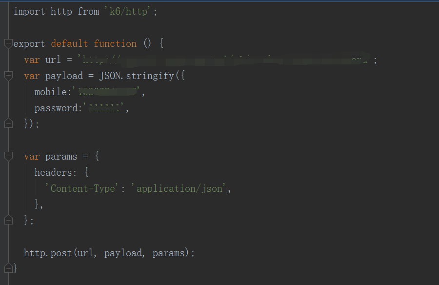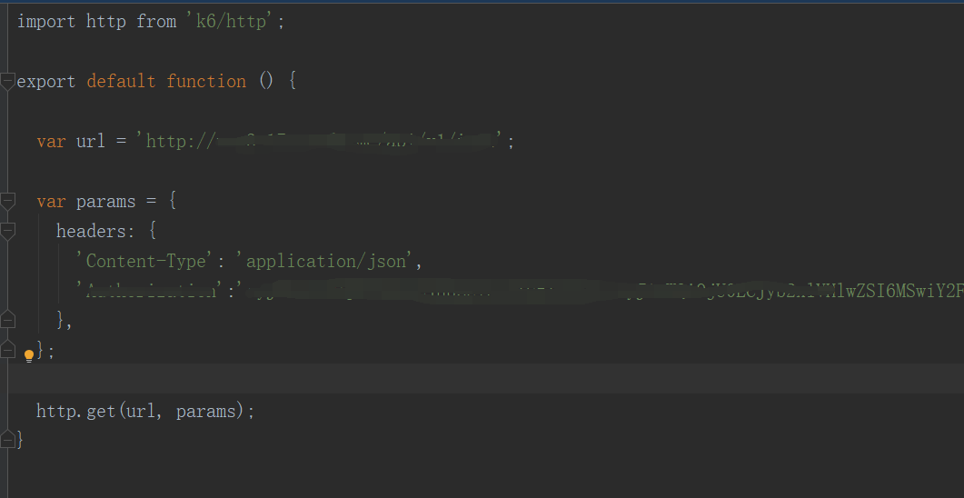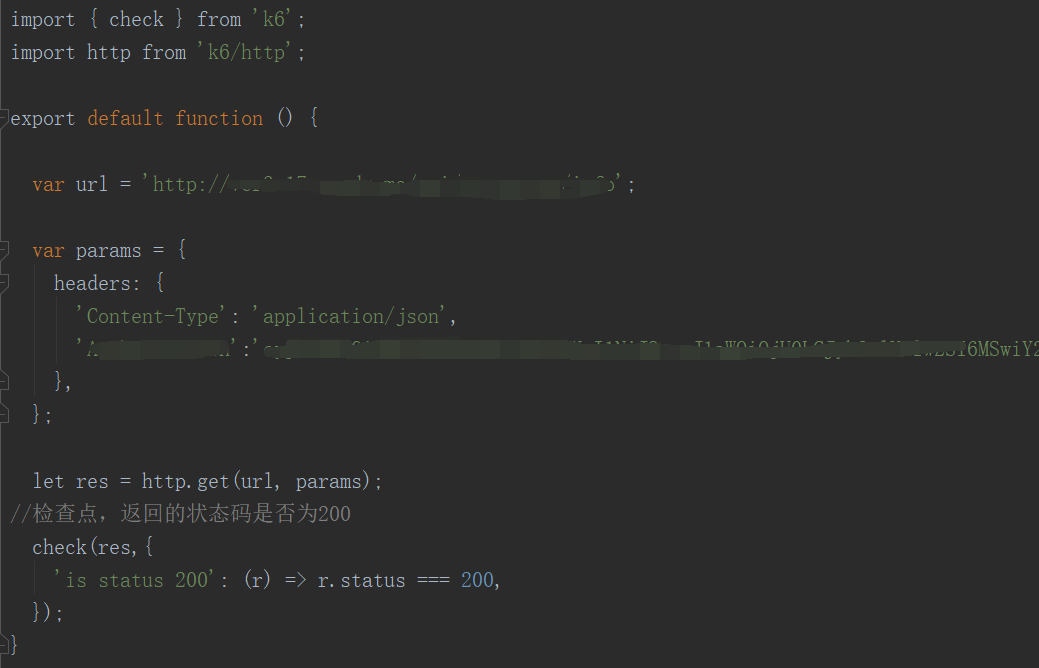 如图所示,k6的请求方式和其他工具的接口请求方式并无太大的区别,只需要导入 import http from 'k6/http';; 按照js的语法依次传入URL,header即可。