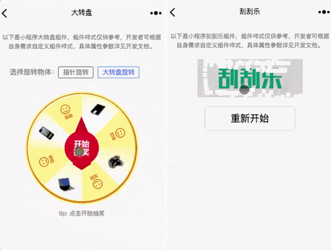 小程序营销组件,使用简单、方式齐全。包含示例代码,玩法多样