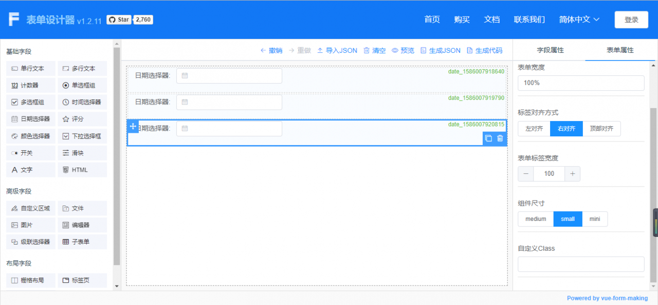 基于Vue的可视化表单设计器,让表单开发简单而高效。