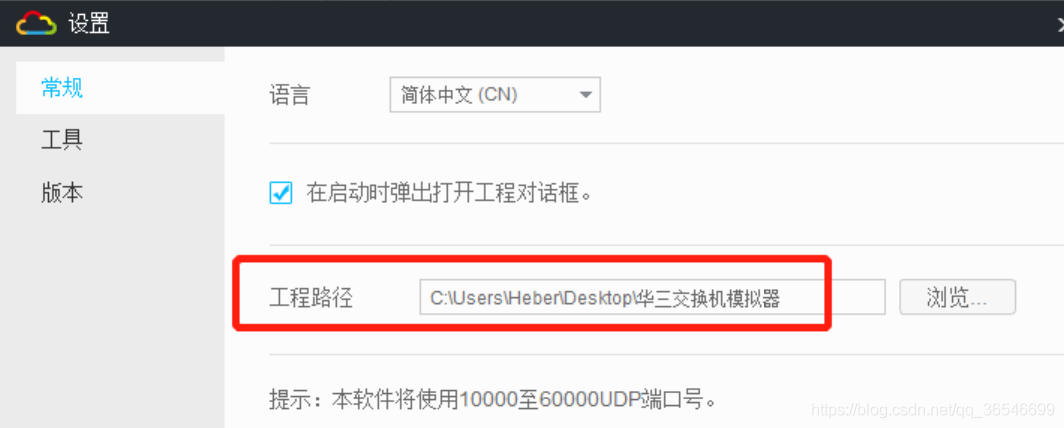 点击右上角的 设置图标-->常规-->可以修改工程路径