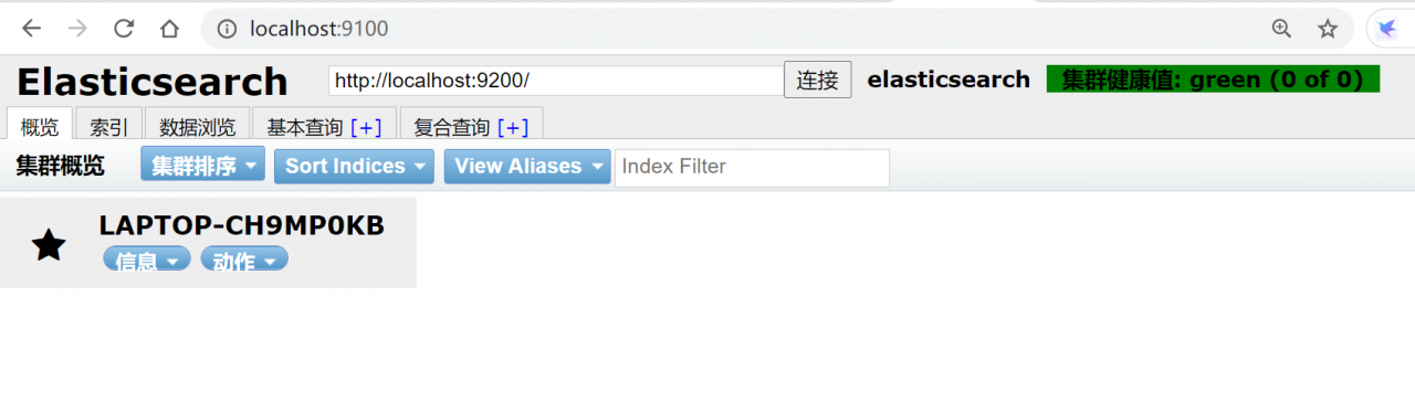 cd elasticsearch-head# 安装依赖npm install# 启动npm run start# 访问http://localhost:9100/