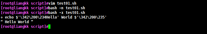 echo 'Hello World' #脚本正文3、 脚本调试