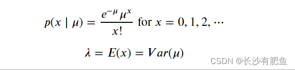 我们的数据是非负的整数, 在这里我们用泊松分布(Poisson distribution)去建模. 泊松分布只需要 ?它描述数据的均值和方差。