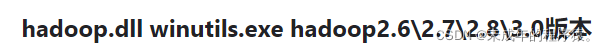 bin目录下缺少hadoop.dll和winutils.exe,需要下载相关文件