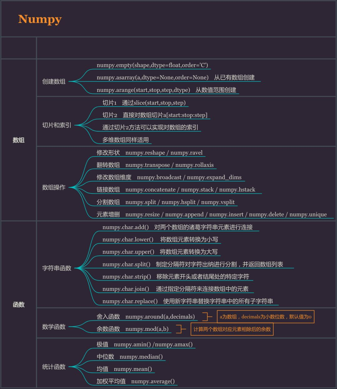·Numpy函数:字符串函数、数学函数、统计函数