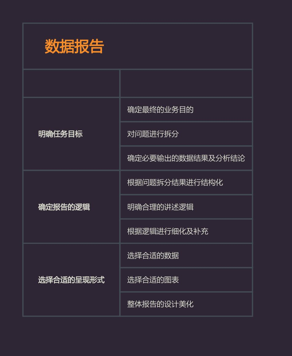 要写好一个分析报告,首先要明确数据分析任务的目标,是要探索数据里的知识,还有要对产品进行优化,或者预测未来的数据。