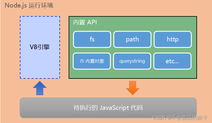 Node.js 中无法调用 DOM 和 BOM 等浏览器内置 API。