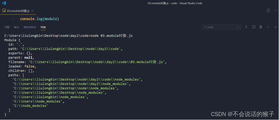 打开终端 ,输入 node 要执行的js文件的路径