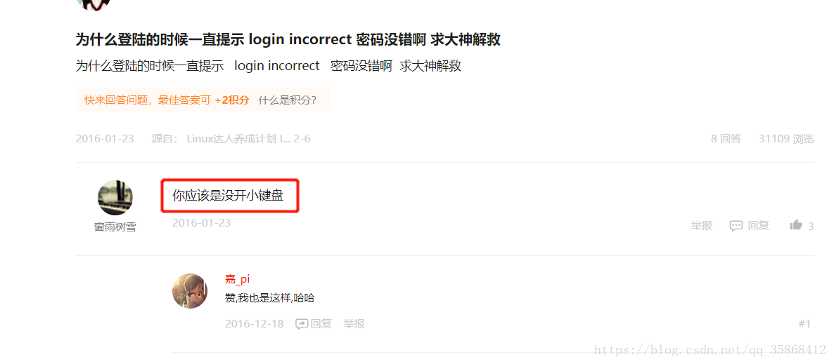 还真是我没开小键盘的原因,打开linux后,小键盘自动关闭了,所以输入密码的时候,就输入错误了