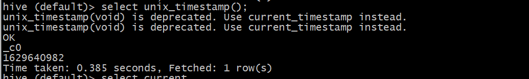 所以想要获取正确的时间,可以修改虚拟机的默认时区和默认语言环境,或者简单的使用select date_format(current_timestamp,'yyyy-MM-dd HH:mm:ss')代替。实际上,当在使用unix_timestamp()时,官方已经提示unix_timestamp(void)被弃用,如图所示: