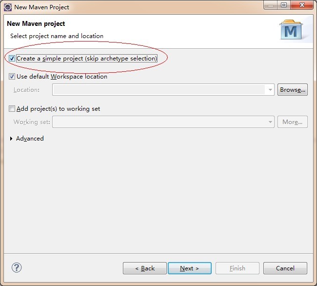 2、选择maven project,显示创建maven项目的窗口,勾选如图所示,Create a simple project
