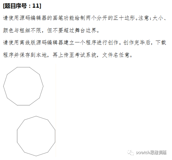 这道题是绘图题,没什么难度,大家绘制这2个正十边形要注意:一是不要超出舞台;二是这2个正十边形不要相交。