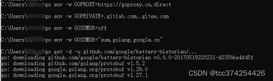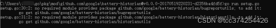 执行命令go get -d -u github.com/google/battery-historian/…时,报错: