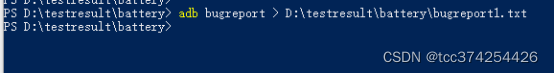 adb命令:adb bugreport > D:\testresult\battery\bugreport.txt