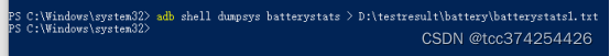 adb命令:adb shell dumpsys batterystats > D:\testresult\battery\batterystats.txt