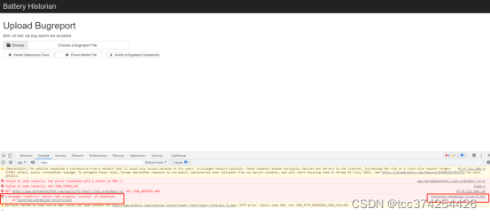 打开http://ip地址:9999页面,上传结果文件后,页面无反应,通过F12,可以看到页面的一些报错,不出现submit按钮的原因是historian-optimized.js报错