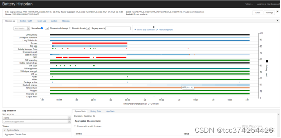 点击 Submit,Battery Historian 将打开根据 Batterystats 数据创建的图表。