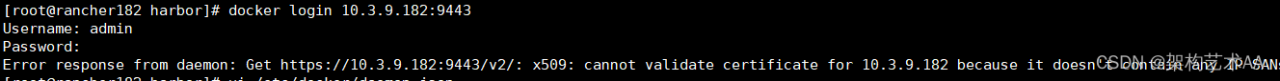 安装完harbor2.4.1后,尝试用docker客户端登录,登录失败,提示x509: cannot validate certificate for 10.3.9.182 because it doesn't contain any IP SANs