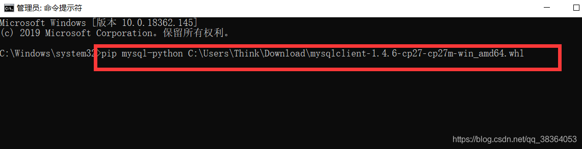 下载完后,打开cmd利用pip安装mysql-python,如图。