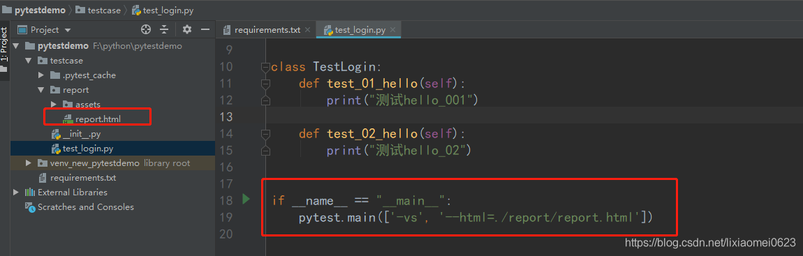 (2)指定模块:pytest.main([‘-vs’,’test_login.py’])