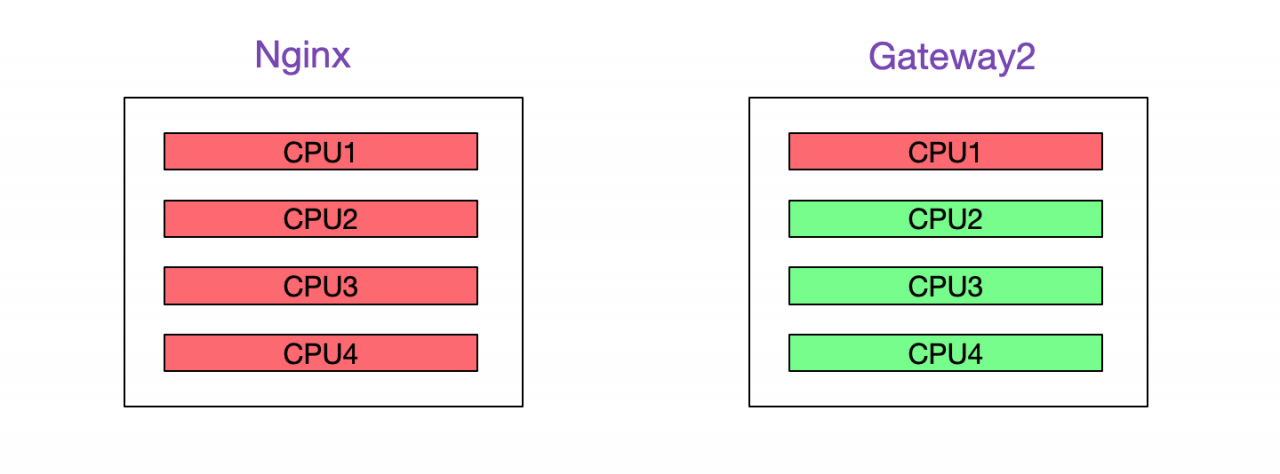 既然猜测是Nginx的瓶颈,就把Nginx去掉吧。Gateway1和Gateway2直连,压测TPS里面就飙升了,而且Gateway2的CPU最多也就吃了2个核,毫无压力。