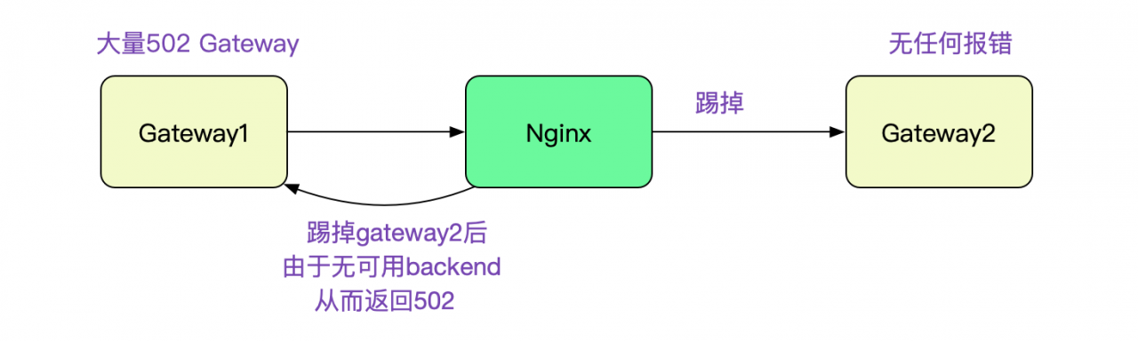 去Gateway2的机器上看了一下,没有任何报错。而Gateway1则有大量的502报错。502是Bad Gateway,Nginx的经典报错,首先想到的就是Gateway2不堪重负被Nginx在Upstream中踢掉。