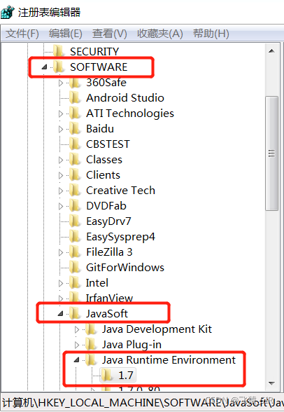 插曲1:执行第一步时可能会因为jdk版本不一样报错,此处收集的工具jdk要求为jdk1.7。可自行安装,若安装有多个jdk的先在环境变量中将jdk版本更换为1.7,若还是报错,可能是注册表中当前版本不匹配。可通过cmd 执行regedit进入注册表编辑界面 将当前版本改为1.7,或直接删除表中其他版本即可。