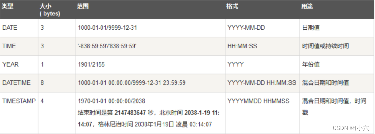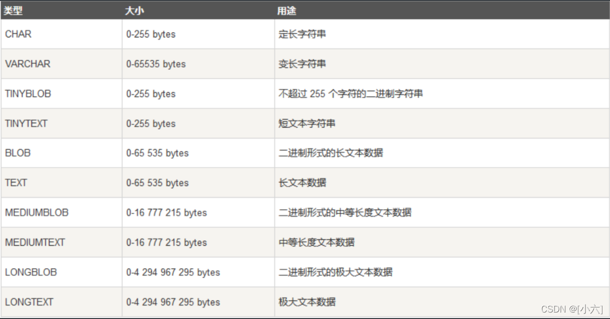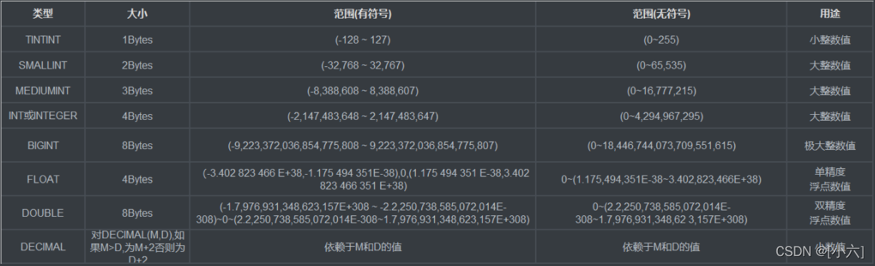 MySQL 中定义数据字段的类型对你数据库的优化是非常重要的。 MySQL 支持多种类型,大致可以分为三类:数值、日期/时间和字符串(字符)类型。