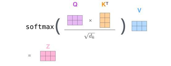 最后,由于我们要处理的是矩阵,因此我们可以通过一个公式将步骤2到6压缩来计算自注意力的输出。