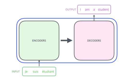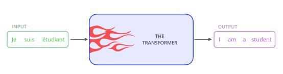 首先,让我们先将模型视为一个黑盒。在机器翻译应用程序中,这个模型将拿一种语言中的一个句子,然后以另一种语言输出其翻译。