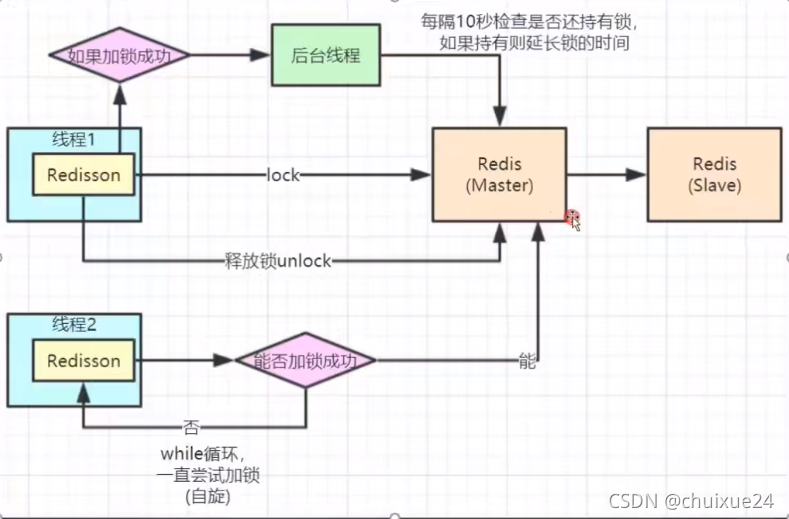 redission分布式锁续期流程 版权声明:本文为chuixue24原创文章,遵循CC 4.0 BY-SA版权协议,转载请附上原文出处链接和本声明。原文链接:https://blog.csdn.net/chuixue24/article/details/120240094