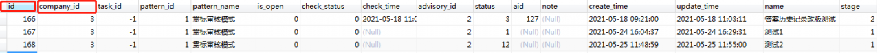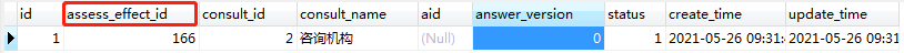 主要关系字段已用红圈标注出来了,3张表的关系是,表1字段assess_effect_id关联表2id, 表2 compnay_id关联 表3id