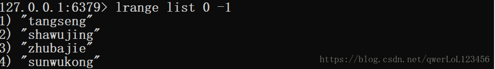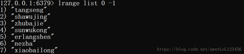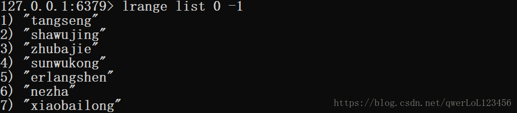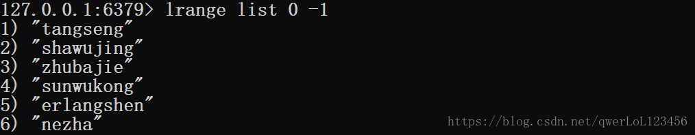 lrange key start end #查看start到end之间的字符串 若end不能确定可以写一个足够大的数 或者end=-1