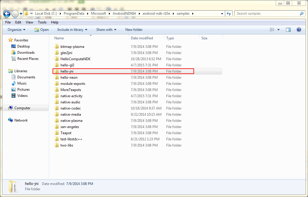Demo中我们直接使用ndk包自带的C代码做示例,此处我使用hello-jni的代码: