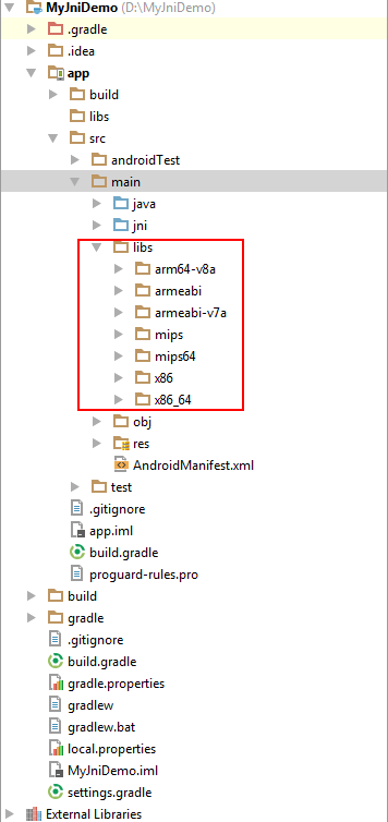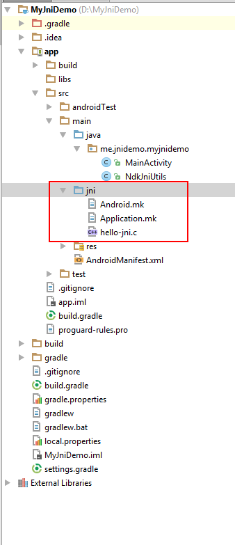 a) 将jni文件夹整体copy,粘贴到main文件夹下: