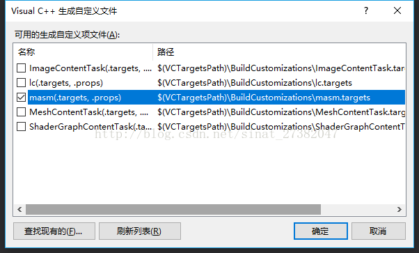2.选中项目右键 “生成自定义”,选择MASM生成规则.