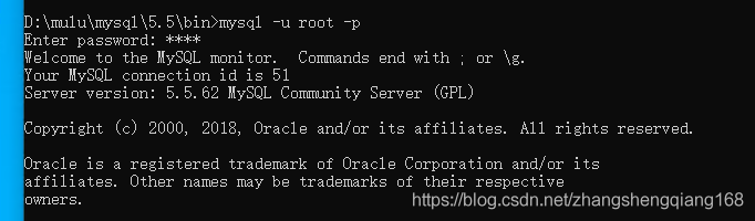2.登录mysql 数据库,命令: mysql -u root -p root