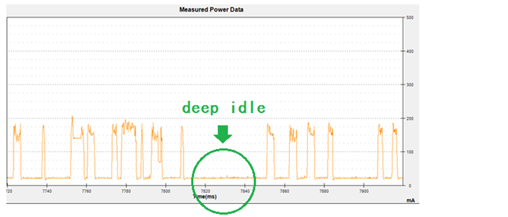 下图中电流的底部就是deep idle的状态,在MP3播放的状态大约20mA;