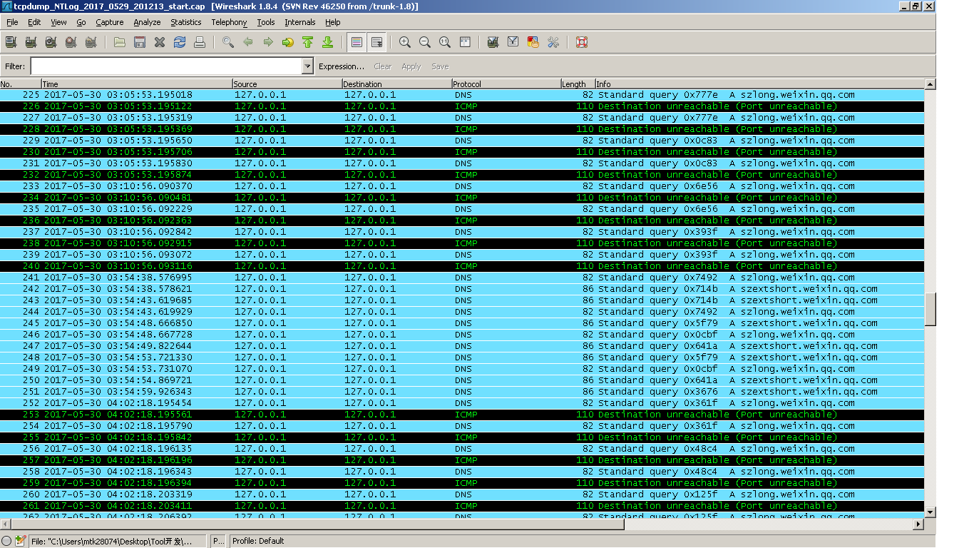 为什么要使用wiresharkwireshark是我们用来分析netlog的一个工具.通常用来定位开数据连接的待机功耗问题,查找是哪个APP/Process在使用数据.wireshark可以在公共网络上下载到,一般公司负责协议/TCP/Wifi这些部门也会有这个工具