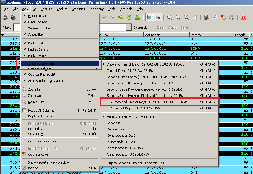 有时候最前面的【时间戳】格式会不对,会跟mobile log对不上,如果遇到了,可以通过如下菜单调整[View]->[Time Display Format]