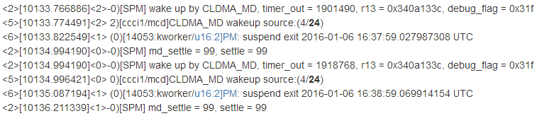 确认唤醒的channel ID,关键字:CLDMA_MD, wakeup source
