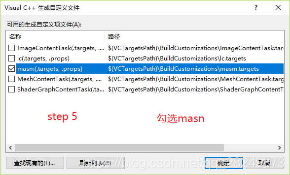 在“生成自定义”中勾选“masm”,完成开发环境的配置。