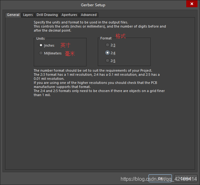 2:3,2:4,2:5 代表的是精度,设置的精度越高,对PCB制造设备的要求也就越高。